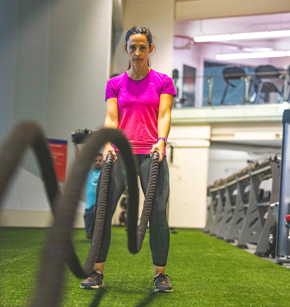 Entraînement de 45 minutes à intervalles de haute intensité avec un combiné d’exercices cardiovasculaires et musculaires en salle d’entraînement. Ce cours en petit groupe, donné par un kinésiologue, est adapté pour chacun des participants selon leur niveau de conditionnement physique. Les 15 dernières minutes se feront au studio 3 (2e étage) pour une courte séance de flexibilité.