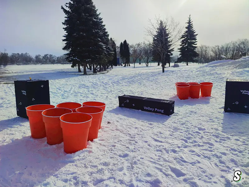 Un espace de jeux ludiques : rencontrez les animateurs de Jeux Spin et essayez leurs six jeux géants fabriqués à Montréal (Tic Tac Dunk, Target, Volley Pong, Fastrak, Putt Luck et Big Pool).