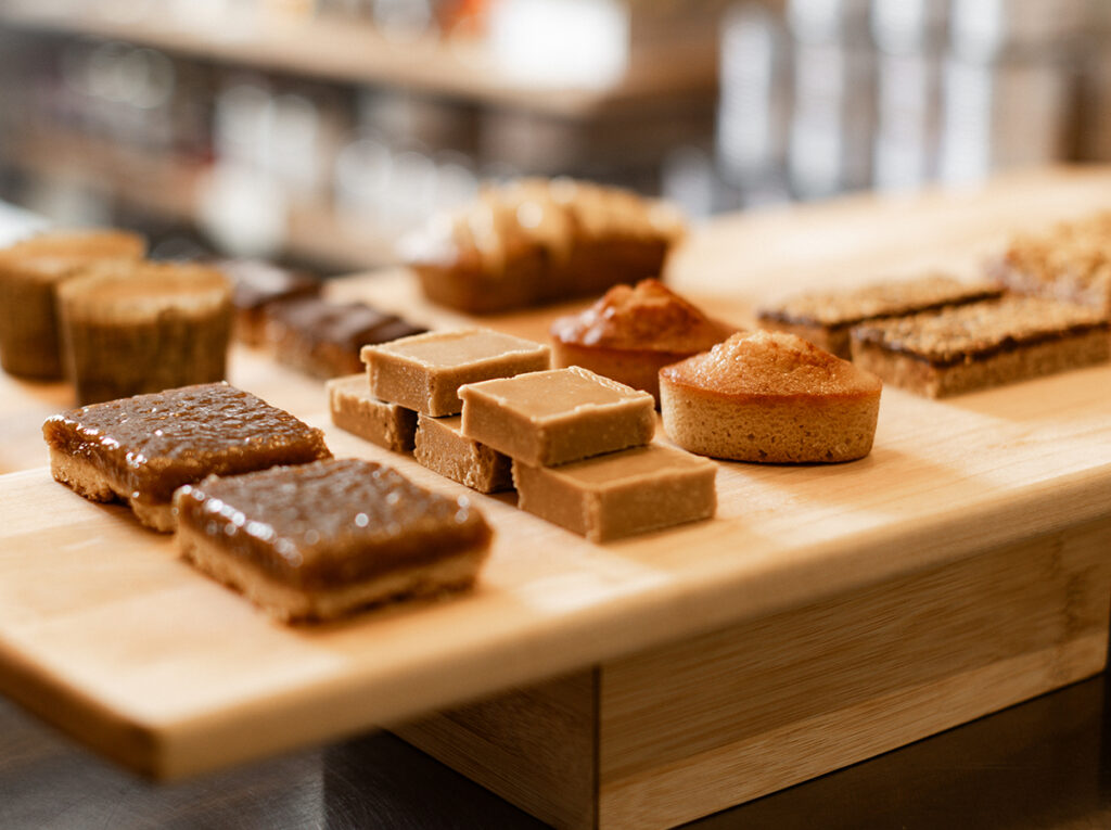 On propose aussi une collection de pâtisseries traditionnelles québécoises faites uniquement avec du sucre d’érable. Je suis la seule à faire ça! Habituellement, les gens utilisent aussi du sucre blanc.